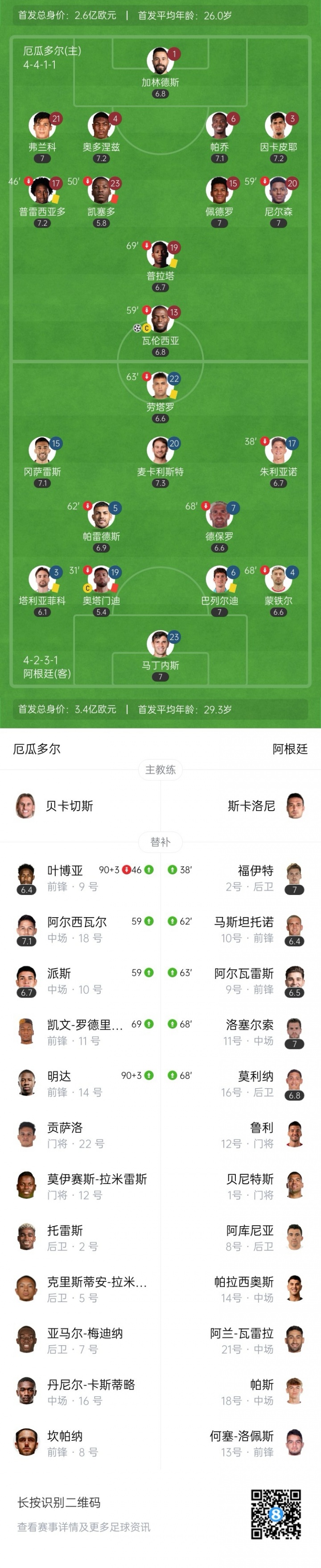 此外,厄瓜多尔还是本届赛事负场数最少、失球数最少的球队,他们18轮仅负2场、仅丢5球。