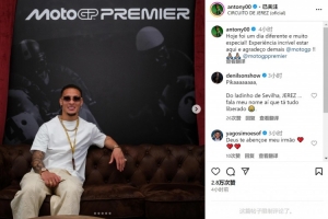 安东尼现场观看了西班牙摩托大奖赛,他在社交媒体上晒出照片,并写道:“今天是一个非常特别的日子!在这里的体验很棒,非常感谢MoToGP!”