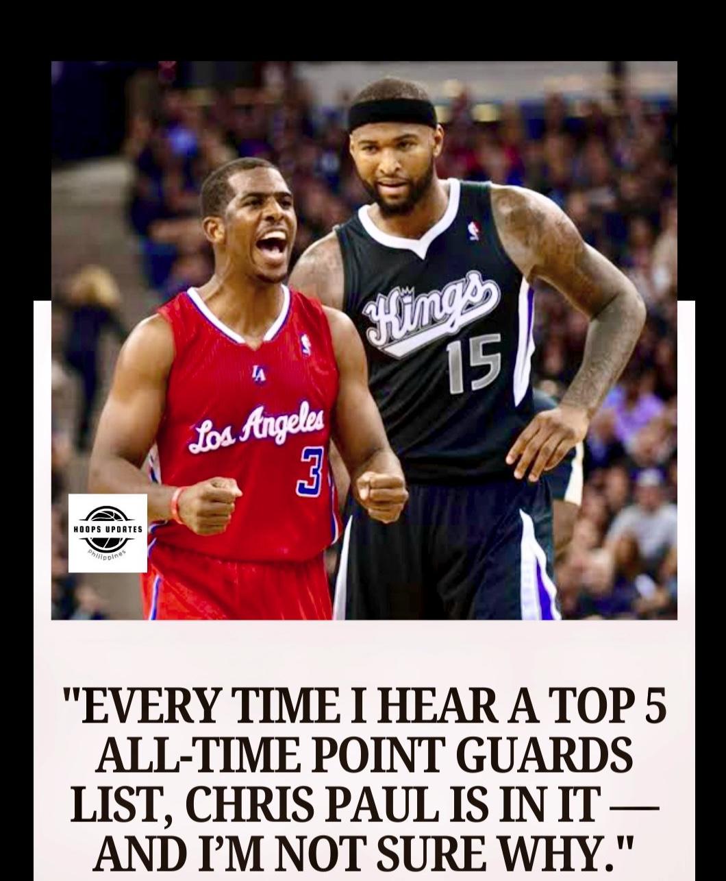 考辛斯表示:“每次当我听到历史前五控球后卫的榜单时,克里斯·保罗总会在里面,但我真的不知道为什么?”